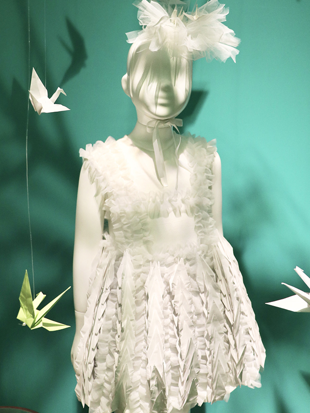 マツオインターナショナル株式会社の若手デザイナーが次世代に平和をつなぐ意味を込めてこども服と未来へはばたく空間を仕立てました。